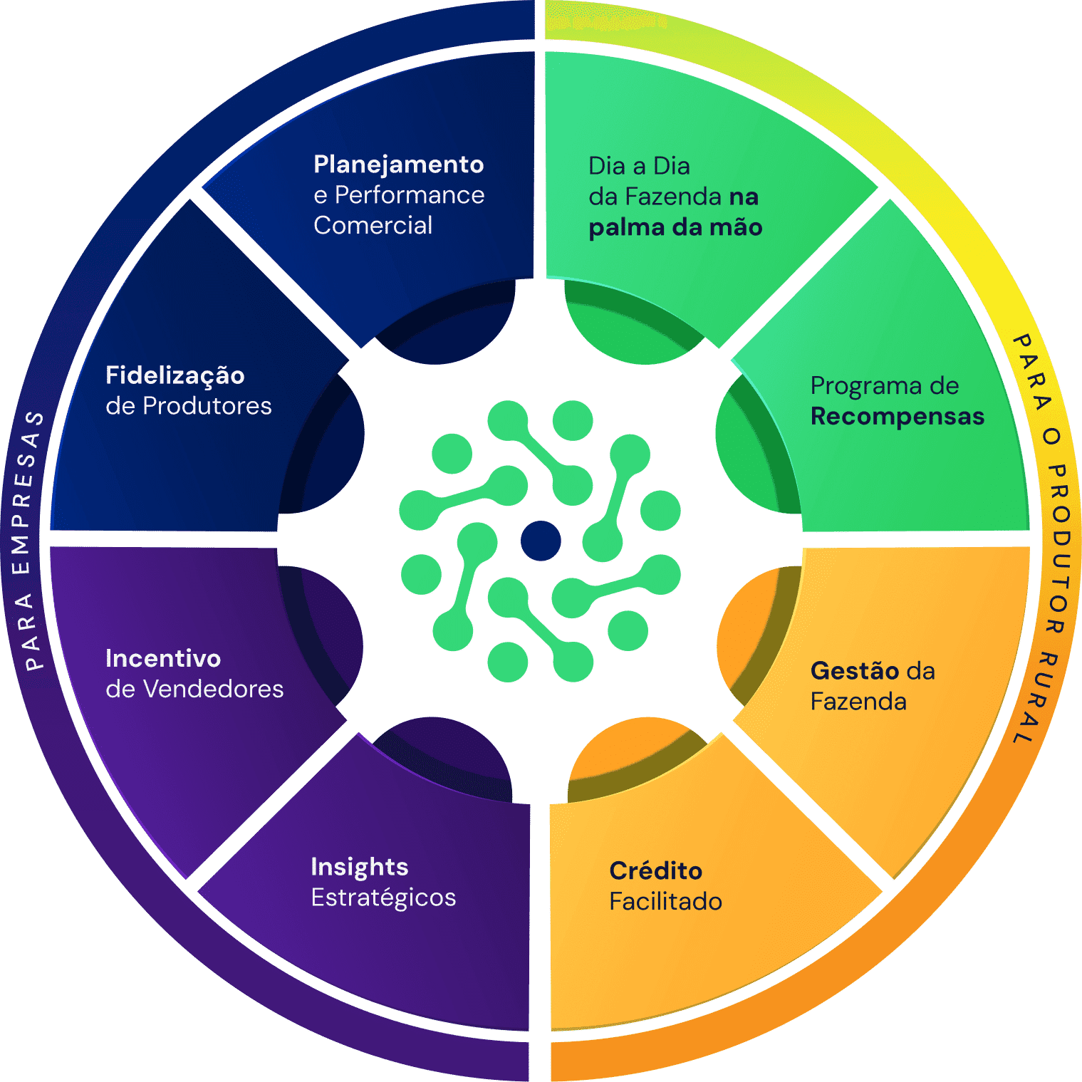 Para empresas, transformamos a performance comercial por meio de uma gestão de incentivos baseada em dados, inteligência de mercado avançada e forte engajamento com os produtores.