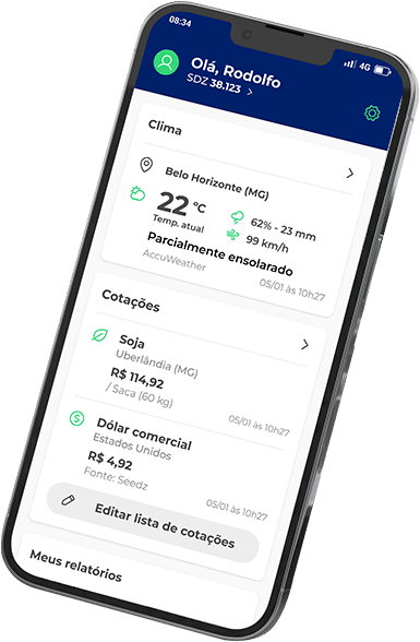 É um aplicativo desenvolvido para facilitar a rotina do produtor rural e de profissionais do agronegócio. Nele você tem, na palma da sua mão, todas as informações que precisa no dia a dia de forma simples e rápida.